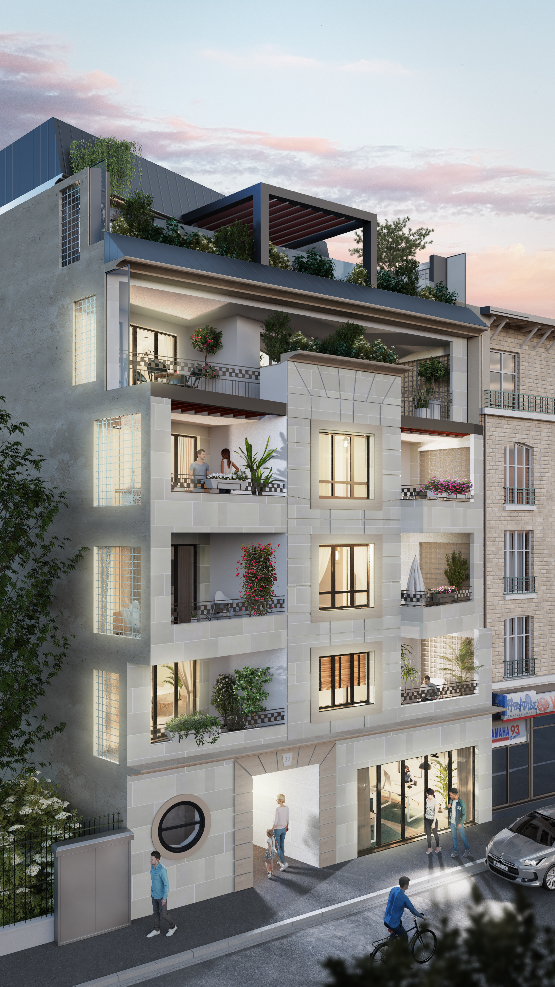 Projekt  budynku mieszkalnego wielorodzinnego wraz z usługami w parterze i podziemnym parkingiem zlokalizowany w Aulnay-sous-Bois, Francja
